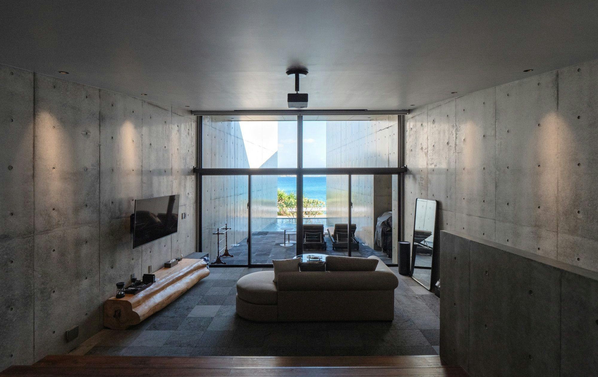 海にせり出す壁に囲まれた、プライべート感溢れるラグジュアリーな大人空間