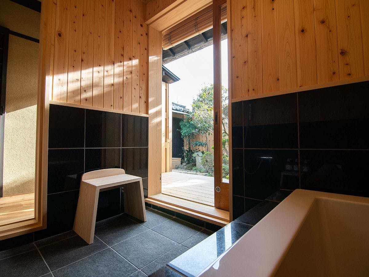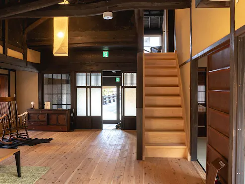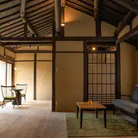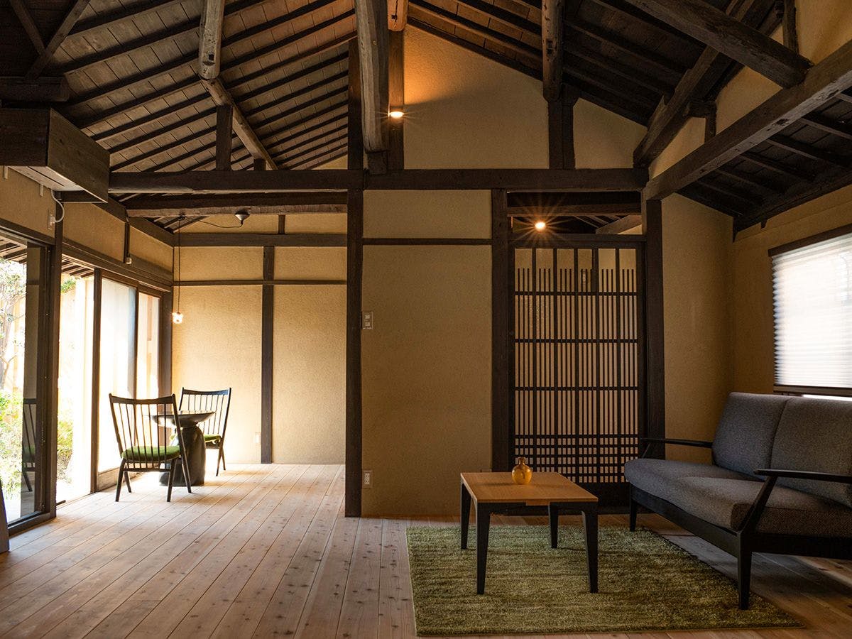 一棟まるごと貸切!重要伝統的建造物群保存地区に佇む町屋(2棟)をリノベーションし、一日一組さま限定の一棟貸切でご利用いただけるお宿です。明治や大正時代に建てられた町屋をモダンにリノベ。飾りすぎない家具をセレクトしシンプルで落ち着く空間に仕上げております。 ご宿泊のお客さまにはウエルカムドリンクとしてスパークリングのハーフボトルをサービス、貸自転車2台を無料でご利用いただけます。 中庭付きの両棟ともやわらかい光が入り、忙しい日常を忘れてゆったりとお過ごしいただけるでしょう。(179 honmachi 定員4名まで / 148 kawaracho定員6名まで)