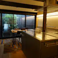 京都に今も残る「京町家」をリノベーションしました。 歴史ある町家に泊まっていただき、京都での暮らしを擬似体験して頂けます。 当宿はドッグフレンドリーの京町家第4弾です。 私たちの「町家と京都の景観を守る」という趣旨に 賛同していただいた企業様とコラボいたしました。 「CEUEU」様より特別に岡山県のデニム生地で作成していただいた暖簾と、 家具はイタリアの家具メーカー「Kartell」様の製品を使用しております。 外観は伝統的な京町家でありながら、高原の別荘をイメージした現代的で スタイリッシュな内装となっており、快適でスタイリッシュな京町家です。 京都の風情ある町並みを、ぜひ愛犬と一緒にお楽しみください。