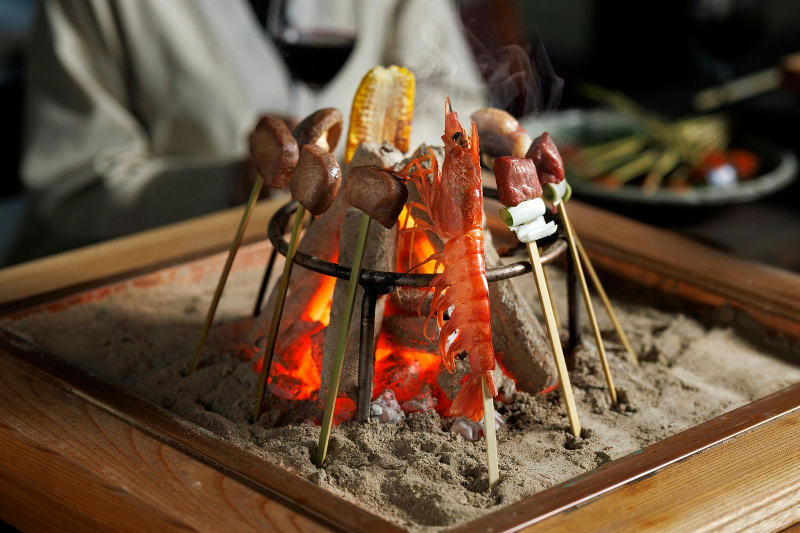 食後のひとときは揺れる炎を前にリラックスタイム。里山の静かな夜を大切な人とお過ごしください。