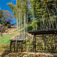 好⽂亭は、⽔⼾藩第九代藩主徳川⻫昭公が偕楽園内に建設し、⽂⼈墨客や家⾂・領⺠を招き、養⽼や詩歌の宴を催す⾵光明媚な⽔⼾城の別邸です。 ときわ邸M-GARDENはオーナーが「9代藩主⻫昭公だったらいま、なにをつくっただろうか」と思いを巡らし、設計しました。 常磐神社・偕楽園に隣接する千波湖を眼下に望める場所にたたずむ邸宅で、歴史と自然を感じることのできる贅沢な空間になっています。お部屋にはサウナと屋外ジャグジーも完備。時を忘れ、優雅な時間をお過ごしいただけます。 披露宴やパーティー、シェフを招いてのレストランとしても利用可能です。