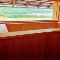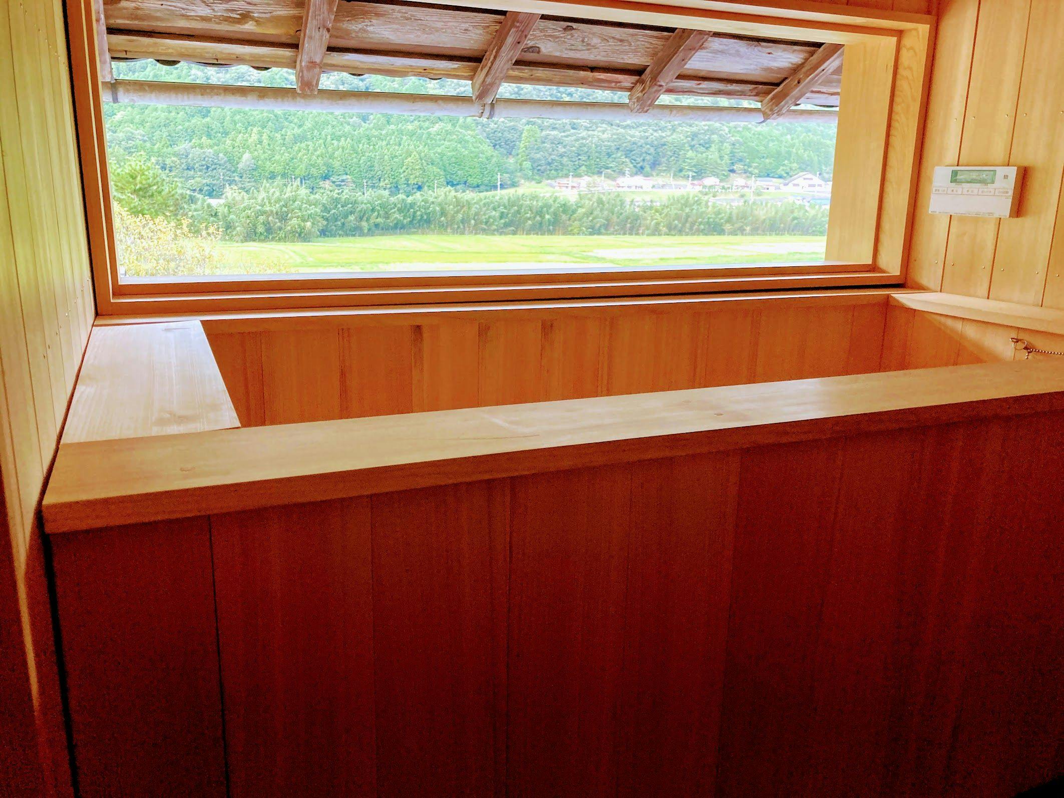 ・営業時間: 15:00~09:00 ・温泉: なし ・かけ流し: なし ・にごり湯: なし ・2階にある総ヒノキ風呂の大きな窓を開ければ、美山の里山風景が一望できるだけでなく、半露天風呂の開放感も味わえます。リラックス効果抜群なヒノキの香りにつつまれて森林浴気分を味わってください。 ・浴室内には、通常のシャワーとオーバーヘッドシャワー付いております。 ・温泉ではありませんが、追い焚き機能もございますのでご滞在中はいつでも熱いお風呂に入ることができます。