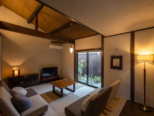 ご宿泊いただく建物は京町家と呼ばれる特殊な木造建築の家屋です。充実なプライベート空間で、京都に暮らすような滞在をお楽しみください。ドッグテラスもあり、愛犬もご一緒にご宿泊いただけます。