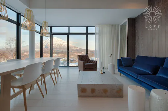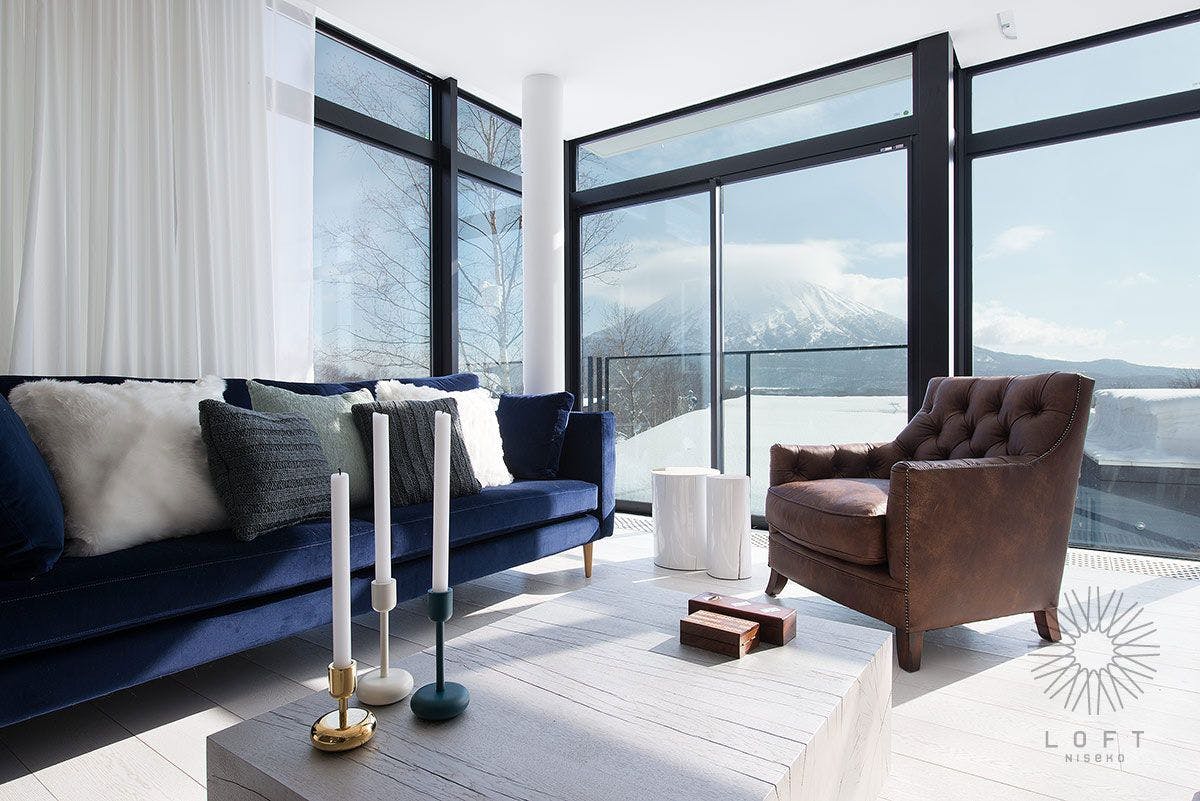大きな窓から羊蹄山を望むデザイナーズコンドミニアムで優雅な滞在を