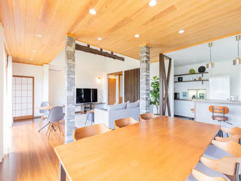 以下のような設備や特徴があります。 一棟貸切・キッチンあり・洗濯機あり・寝室複数・駐車場あり・食料品の持込可