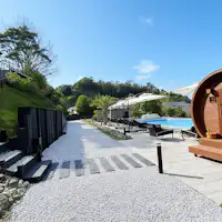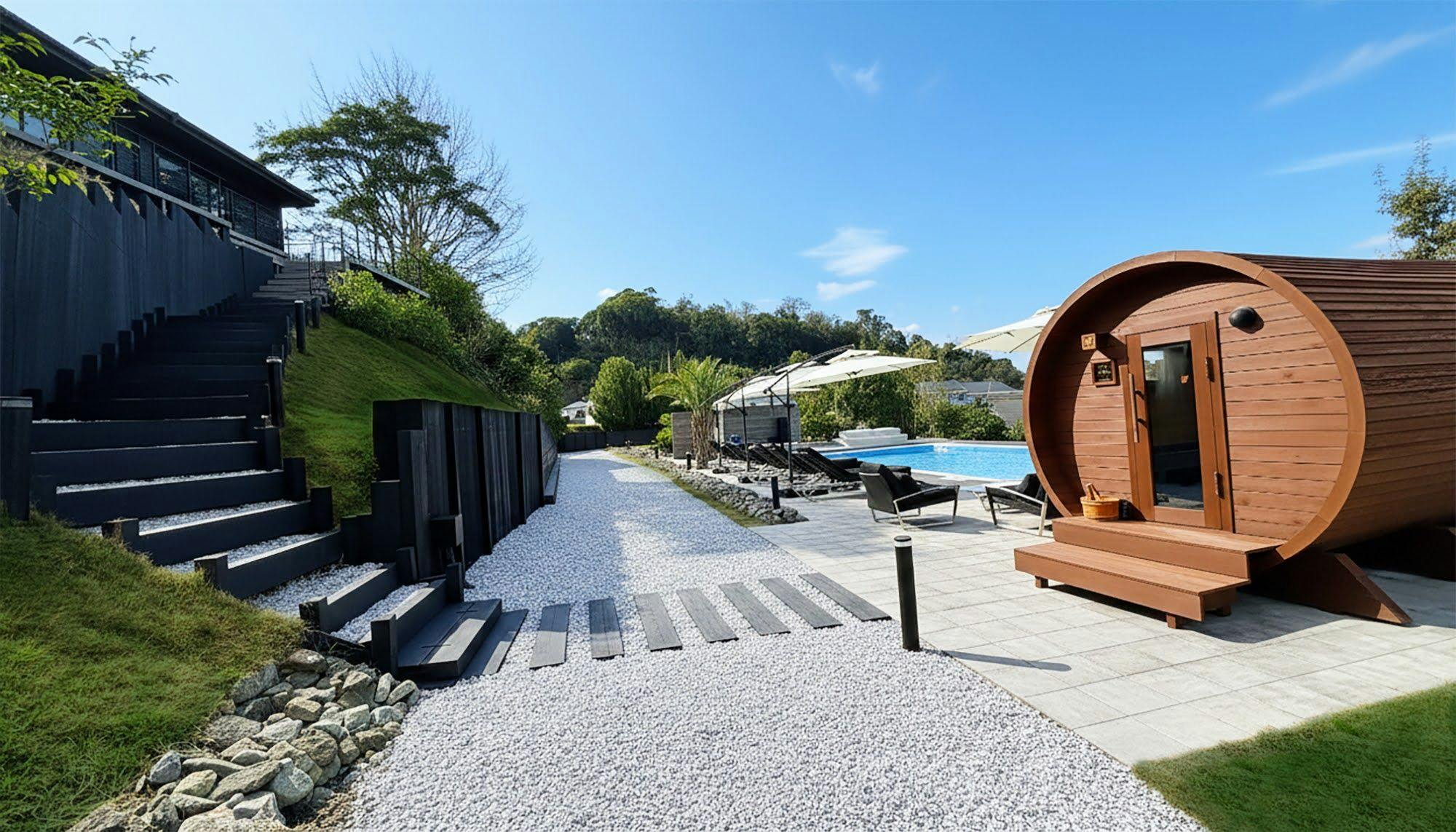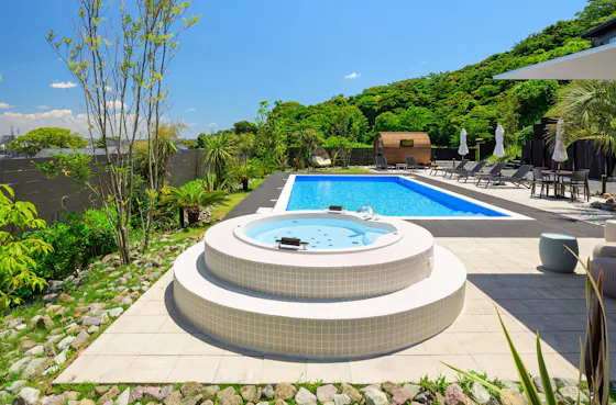 大切な人と過ごす、最高に自由で、最高に贅沢な夏。 家族と、恋人と、友人と。いつの間にか後回しにしていた「一緒に笑う時間」を、思いっきり取り戻す場所。 まぶしい太陽。肌に触れる風。きらめく水しぶき。丘の上に広がるのは、日常とはまったく違う“特別な時間”。 大型プール・ジャグジー・BBQ・トランポリンなどやりたいことを、好きなだけ。 思いっきり笑って、疲れたらそのまま寝転ぶ。それだけで、満たされる。 扉を開けた瞬間から始まるのは、誰にも邪魔されない“自分たちだけの夏”。 ここでしか味わえない、ちょっとやりすぎなくらいの“特別な夏”を。 誰と訪れてもいい。でもきっと、帰る頃には思う。 「またここに戻ってきたい」と。 ------------------------------------------------ 心が跳ねる、夏のアクティビティ ・プライベートプール&ジャグジー 飛び込んだ瞬間、全部どうでもよくなる。 昼は全力ではしゃいで、夜はナイトプールでチル。 同じ場所なのに、まるで違う2つの世界。 ・ファイヤーピット 炎を囲めば、不思議と素直になれる。語ってもいい、黙ってもいい。 その“余白”が、たまらなく心地いい。 ・Dog & Kids Space 走り回る笑顔に、つられて笑う。ただそれだけで、もう幸せ。 ※トランポリン、ブランコ、パターゴルフなど遊具がたくさん。 ・プレミアムミニバー(アルコール/ソフトドリンク) プールサイドでの一杯。それはもう、“たまらない”。 ・採暖室(24時間利用可能) 遊び疲れた体をじんわりリセット。 外ではしゃいで、中でととのう。この無限ループ。 ・電動キックボード/タンデム自転車 風を切るたび、テンションが上がる。 気づけば笑ってる、そんなスピード感。 ・BBQ/ピザ作り体験/お鍋作り体験(オプション) 焼く音、香り、笑い声。 五感全部で楽しむ“ごちそう時間”。 ・Harley Davidson(オプション:レンタル) エンジンを鳴らした瞬間、世界が変わる。 ほんの少しの冒険が、忘れられない記憶に。 ・サンセットクルージング(オプション) 息をのむほどの夕焼け。 その景色を誰と見るか、それがすべて。 ・トゥクトゥク観光ツアー(オプション) 風、音、景色。 全部ひっくるめて、もう楽しい。