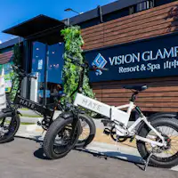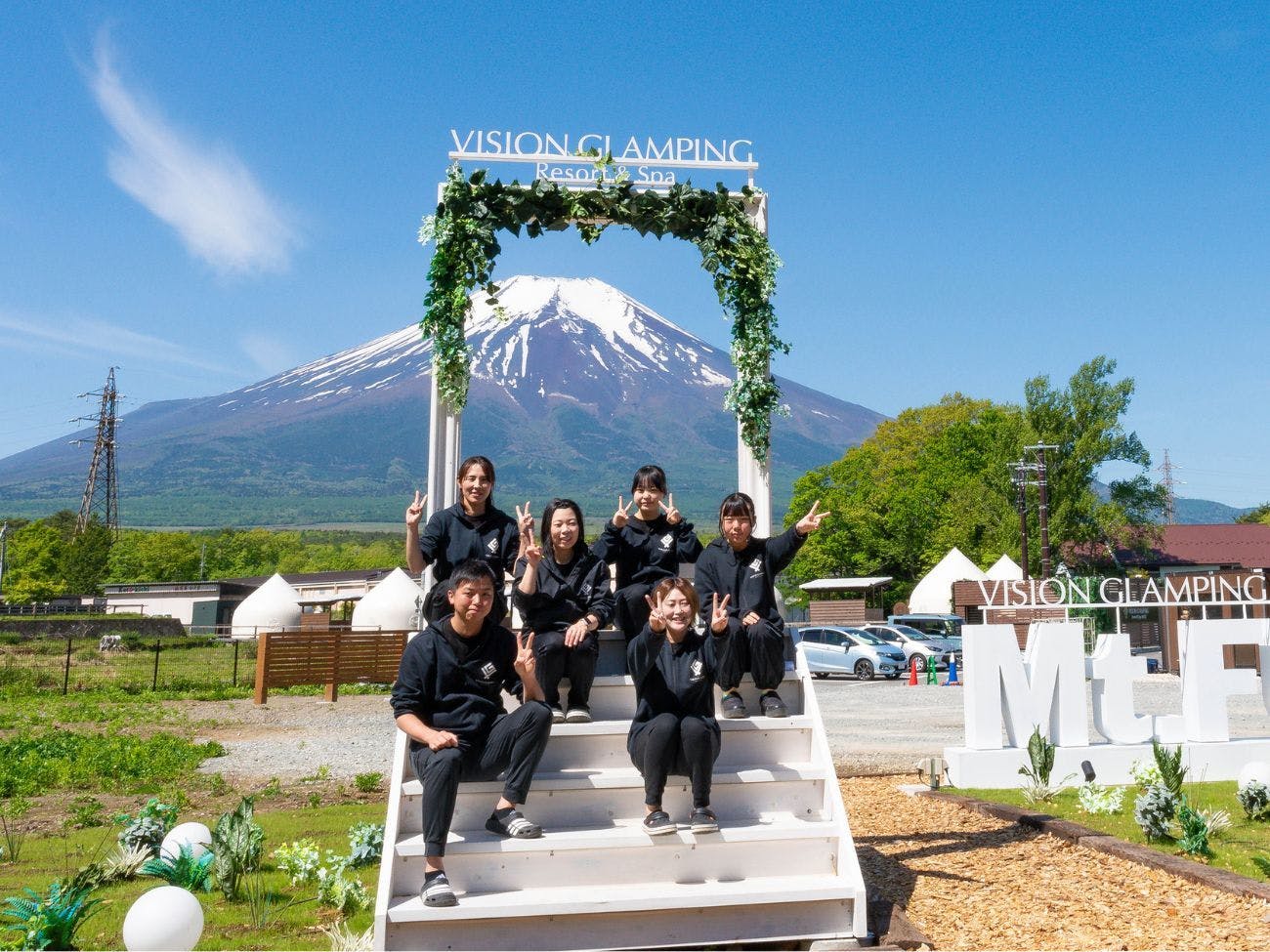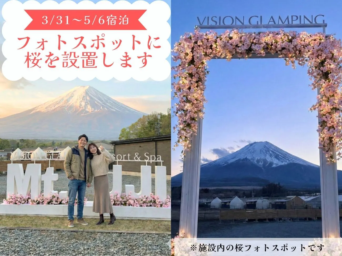 富士山を真正面に望む当施設自慢のフォトスポットに、華やかな桜を設置。