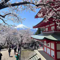 日中は青空と富士山に映える桜を、日没後は幻想的なイルミネーションによるライトアップをお愉しみいただけます。