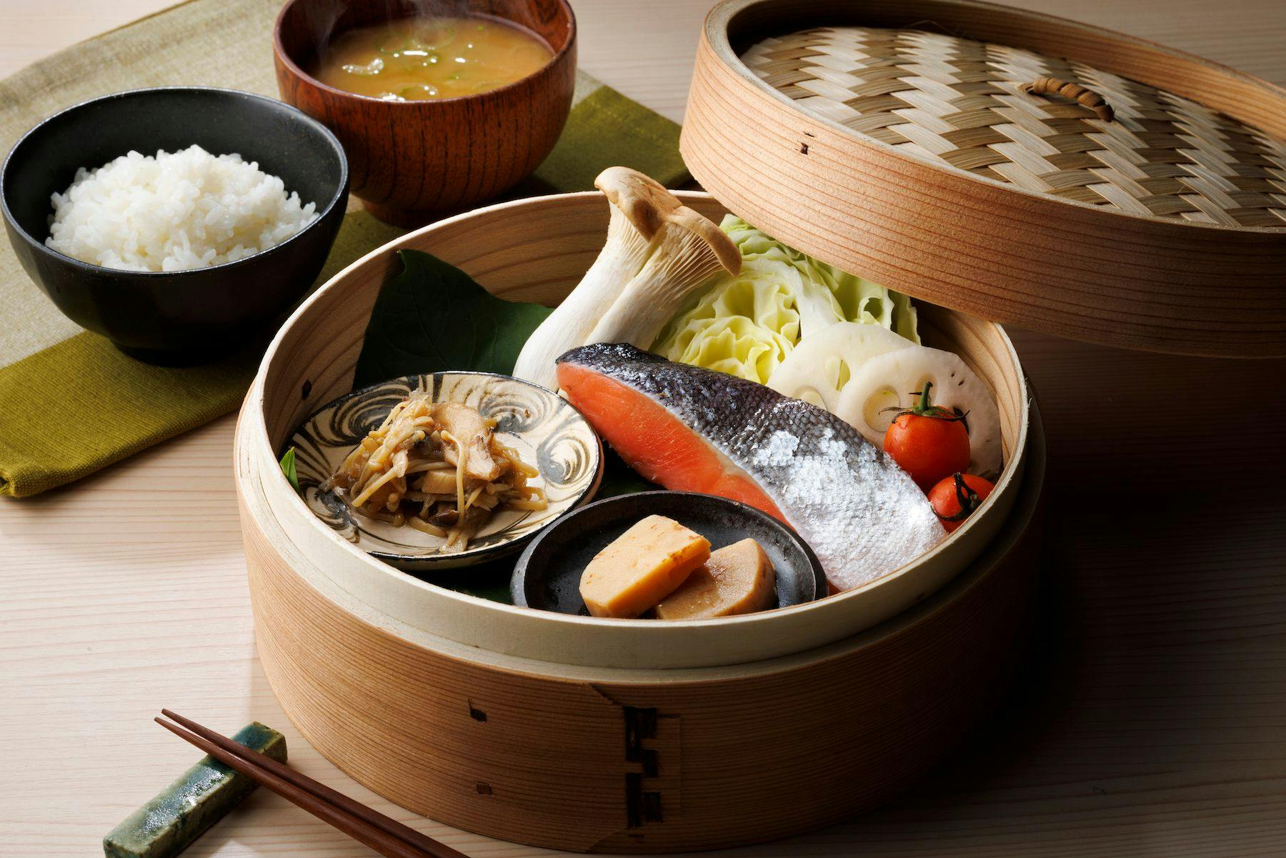 | 朝食 | 蒸籠蒸しの和朝食 蒸し鮭 季節野菜の温野菜 炊き立てご飯 山梨県産五味醤油のお味噌汁 |