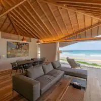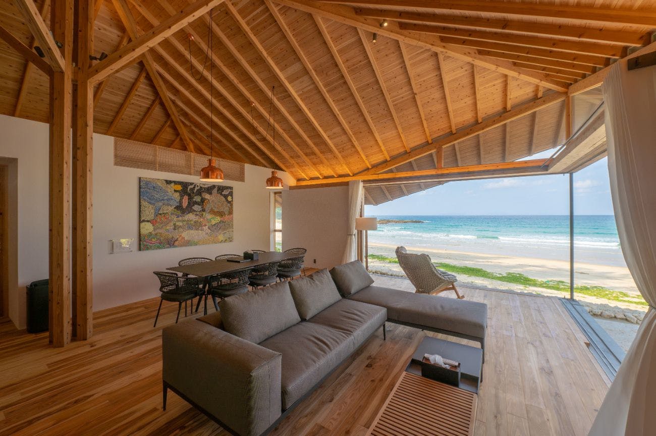 YUUNA-結那-は、世界自然遺産に選ばれた鹿児島県徳之島町の里久浜海浜公園に建設された限定5棟のプライベートヴィラです。全棟が一棟貸しタイプの宿となっており、全棟オーシャンビューで個室サウナ付きとなっています。 リビングは、素足が気持ち良い無垢の屋久島地杉フローリングなど、鹿児島県産の木材をふんだんに使った大空間で、最高のロケーションを享受するコーナーの大型木製サッシュを開放すると、環境に没入するような非日常を味わうことができます。 また、マリンアクティビティはもちろん、島唄POPSライブや島料理体験、闘牛ふれあい体験、徳之島の魅力をたっぷり味わえるアクティビティも豊富です。