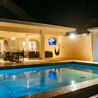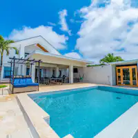 以下のような設備や特徴があります。 一棟貸切・キッチンあり・洗濯機あり・寝室複数・駐車場あり・食料品の持込可・プールあり