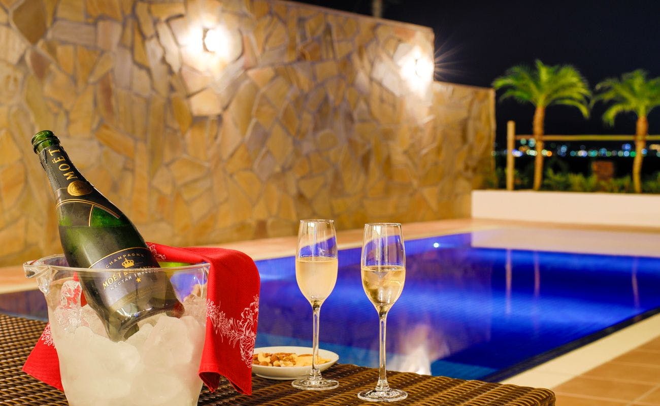 海を眺めながらゆったりとした時間が過ごせるプライベートプール ライトアップされたプールサイドでお食事など、どなたとでも素敵な時間を演出します。 ※夜間は近隣のご迷惑にならないよう静かにご利用下さい。