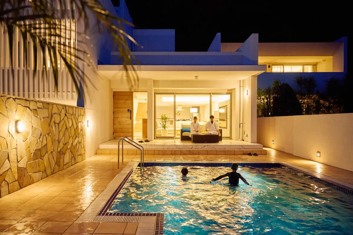 家族三世帯で宿泊させて頂きました。 白い外観に圧倒された事。リビングの広さも有りますが大きなソファーににゆったり座ると目の前に広がるプール、海。ジャグジーもプールも温泉なので一年中入れ楽しめる最高のvilla。寝室もオーナーのセンスの良さが分かる調度品であり、アメニティもブランド品を揃えていて、お洒落な空間で家族で過ごす事が出来ました。また機会があれば来たい場所となりました。