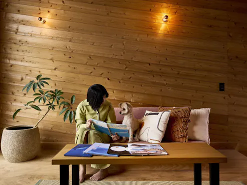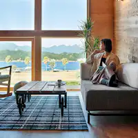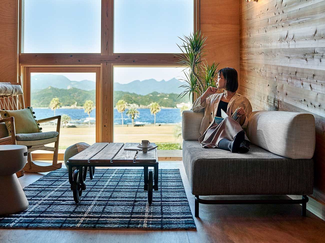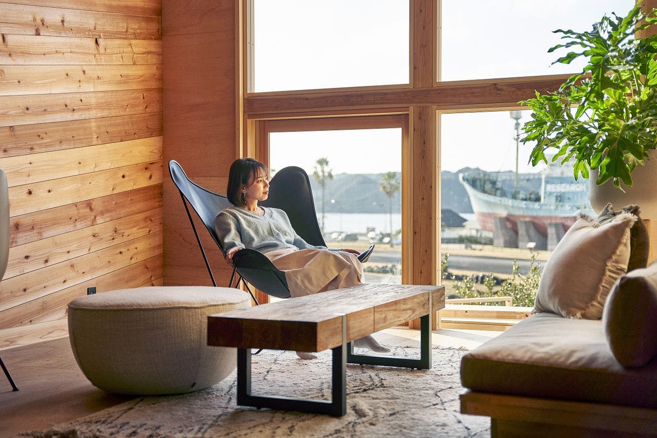 グランオーシャンリュクス海熊野は、グランピングの良さを生かしながら、ひとつ先のラグジュアリーを求めたプライベートヴィラ。 船をモチーフに建てられたプライベートヴィラは、Kujira、Yu-hi、Mori、Nami、Kumoの全5棟。 お部屋のインテリアは輸入販売を行う株式会社アクタスが家具をセレクト。 窓からの眺めとお部屋のインテリアは、棟のコンセプトに沿って少しづつ違うのも楽しみのひとつ。 バスタイムをプライベートに愉しめるジャグジーバスも。 かすかに聞こえるくじらの声を聞きながら、船のなかで休むように眠りにつく。 海辺の別荘でくつろぐように。ワンランク上の贅沢な時間をお過ごしください。