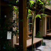 母屋を抜けると、中庭に並んだ7つのアパートメントは、素足がきもちいい、小さな木のおうち。 新しくて、懐かしい、すこし異国の雰囲気漂う日本の家。 ホテルでも、旅館でもない、新しい滞在のかたちは少しグリーンでエコロジカルで、それは日常のほんの少し先。
