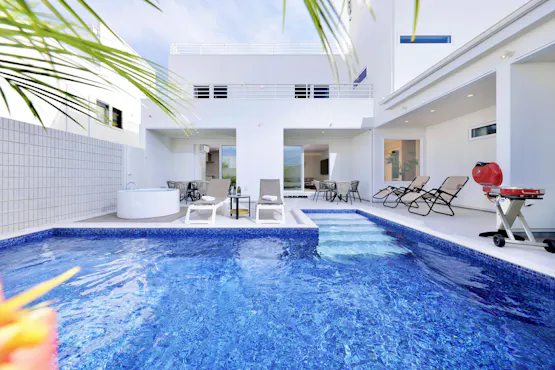 海を一望するオーシャンビューに、特大プライベートプール・サウナ・ジャグジー・天然温泉・プロジェクターなどを備えた、格別の滞在体験をご用意。
