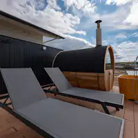 TORIKKA STAYは、淡路島西部のビーチに建つ1日1組限定の貸別荘です。空と海だけの景色が広がり、まるで浮かんでいるようなリビングルーム。夕暮れに刻々と移り変わる空のグラデーション。炎がゆらめく薪ストーブの暖かさと静かに薪がはぜる音。建築家とデザイナーの父娘が手がけた内装は、吹き抜けのアール天井や自然素材の質感、上質な家具の佇まいが雄大な水平線の景色と調和し、他にはない「島の別荘」をつくりあげています。大切なご家族と、ご友人と、あなたの島の別荘としてぜひご利用ください。