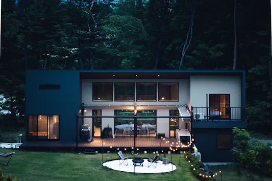 雄大な富士北麓の静かな森の中にあるプライベートステイ 広大な空間にて優雅で贅沢なひとときをお過ごしいただきたい。 木に囲まれ周囲の人を気にすることもない、 ただ時間を忘れ富士山麓の澄んだ空気と水、そこに生きる自然を体感。 ウェルカムコーヒーは河口湖にある長崎珈琲さんの自家焙煎豆をご用意、こだわりのキッチンや半露天風呂、プライベートなお庭で焚火体験などお楽しみ頂けます。 時間を忘れ日々の疲れを癒す 本当のグランピング体験をしたいあなたに どうぞ、心躍る時をお過ごしください。