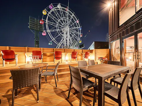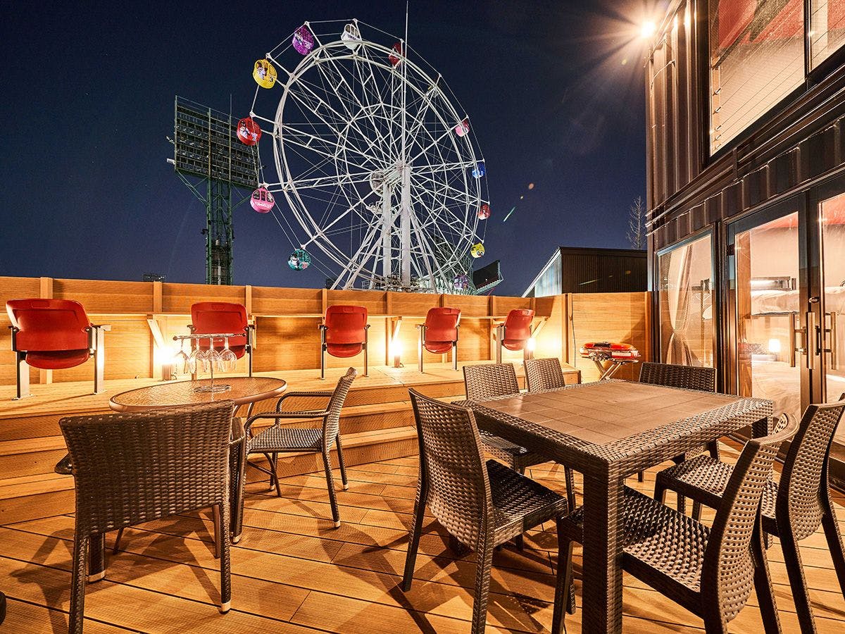 Rakuten STAY×EAGLESはスマイルパークグリコ内に位置しております。 そのため、観覧車やアスレチック、メリーゴーラウンドなどを楽しみ、疲れたらそのまま施設でお休みいただくなど、柔軟な滞在体験が可能です。(※冬季休演日あり) 追加料金なしで利用可能で今までにない宿泊体験になること間違いなし!
