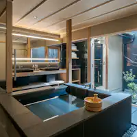 「ANJIN Gosho Ebisugawa」は、アクセスが良い街中でありながら、京都らしい町家の多く残っている夷川通りの一角に佇んでいます。二条城や京都御所へは徒歩圏内であり、最寄りの地下鉄烏丸線の丸太町駅からは乗り換えなく京都駅へアクセス可能です。 二階建ての一棟貸切り宿には、快適なベッドはもちろん、最新の設備やキッチン、洗濯乾燥機を完備しています。開放的なリビングの先にはお庭を望む大きな石張りの浴槽が印象的で、広々とした浴槽に身体を沈めれば旅の疲れはほぐされ、木の香りに包まれて心からリラックスすることができます。 今と昔の建築・生活様式を融合させた、京都での暮らしの体験を心ゆくまでお楽しみくださいませ。
