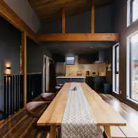 以下のような設備や特徴があります。 一棟貸切・キッチンあり・洗濯機あり・寝室複数・駐車場あり・食料品の持込可