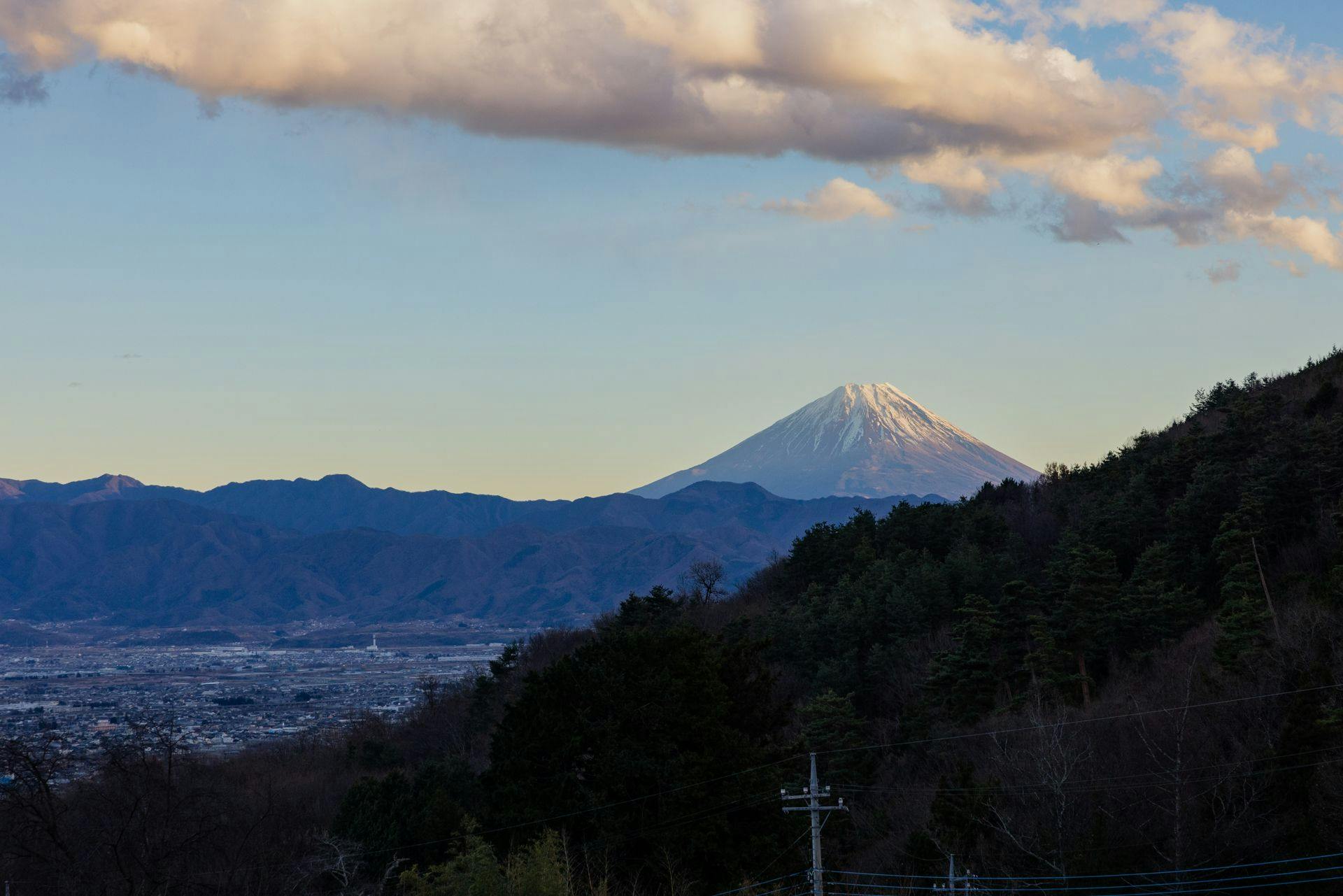 敷地内に到着し、駐車場から受付棟、そして客室へと進む間に、段々と視界がひらけていき、お部屋の先に広がるのは、街と山が調和した甲府盆地。 お部屋によっては、右手に富士山を臨めます。 陽が落ちれば人口60万人の甲府の街明かりが美しい夜景となり、特別な夜を演出してくれることでしょう。