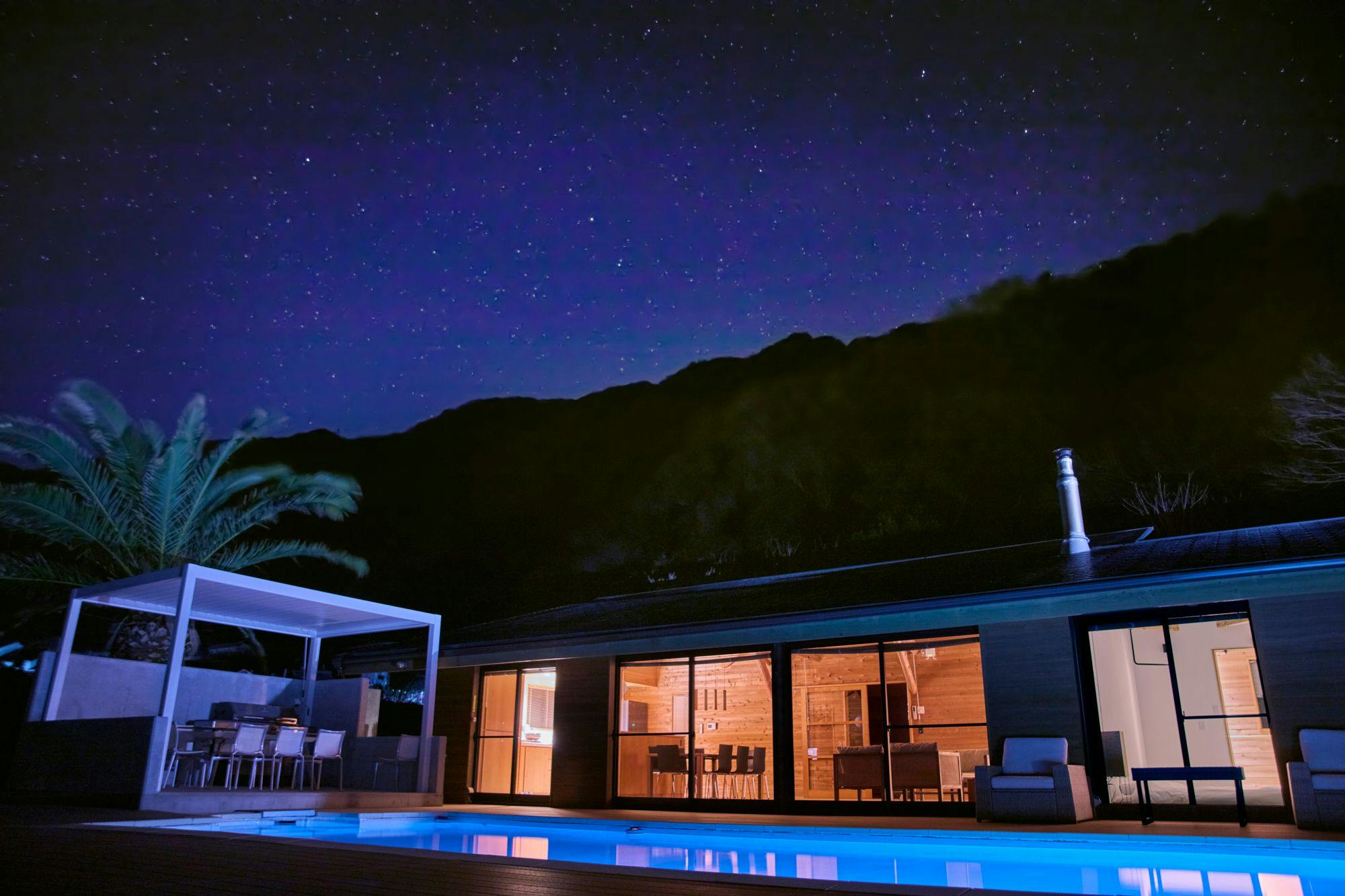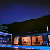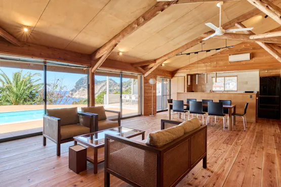 Kalst 2025/11/23海を見ながらプールサイドでもお部屋からでも どこに居ても癒されます。自然豊かで 鳥の鳴き声や生き物さん達のお出迎え笑平屋建てならではの開放感。時間を忘れてみんなが自由に過ごせました。それでも4部屋のベットルームがあるので大家族や2家族でもプライベート空間有ります。キッチン、家具や寝具も素敵です。大きな窓やガラスの清掃もすばらしく、洗面所にクイックルワイパーが置いてある気配りまでありがたいです。スタッフさんも親切で また帰りたくなるくらい居心地の良い場所でした。ぜひ次は満天の星をみたいです!
