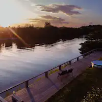 都心から車で約90分のいすみ川沿いに位置する一棟貸の絶景サウナ付き「ISUMI Cabin」。 いすみ川が目の前に広がる当施設には薪サウナを完備しており、セルフロウリュも楽しめます。サウナ室を出ると芝生のお庭にはこだわりの打たせ水シャワーとタライの水風呂をご用意。水風呂はお子様のプールとしても大活躍!美しいサンセットタイムとともに「ととのう」時間はこの立地ならでは。バーベキューグリルを完備しているため、材料を持ち込めばすぐにお庭でお楽しみいただけます!大きな窓があるバスルームは露天風呂気分でゆったりと。近隣には車で数分でサーフスポットや海水浴場へ。すべてのお部屋からいすみ川が見え、おだやかな時間をお過ごいただけます。