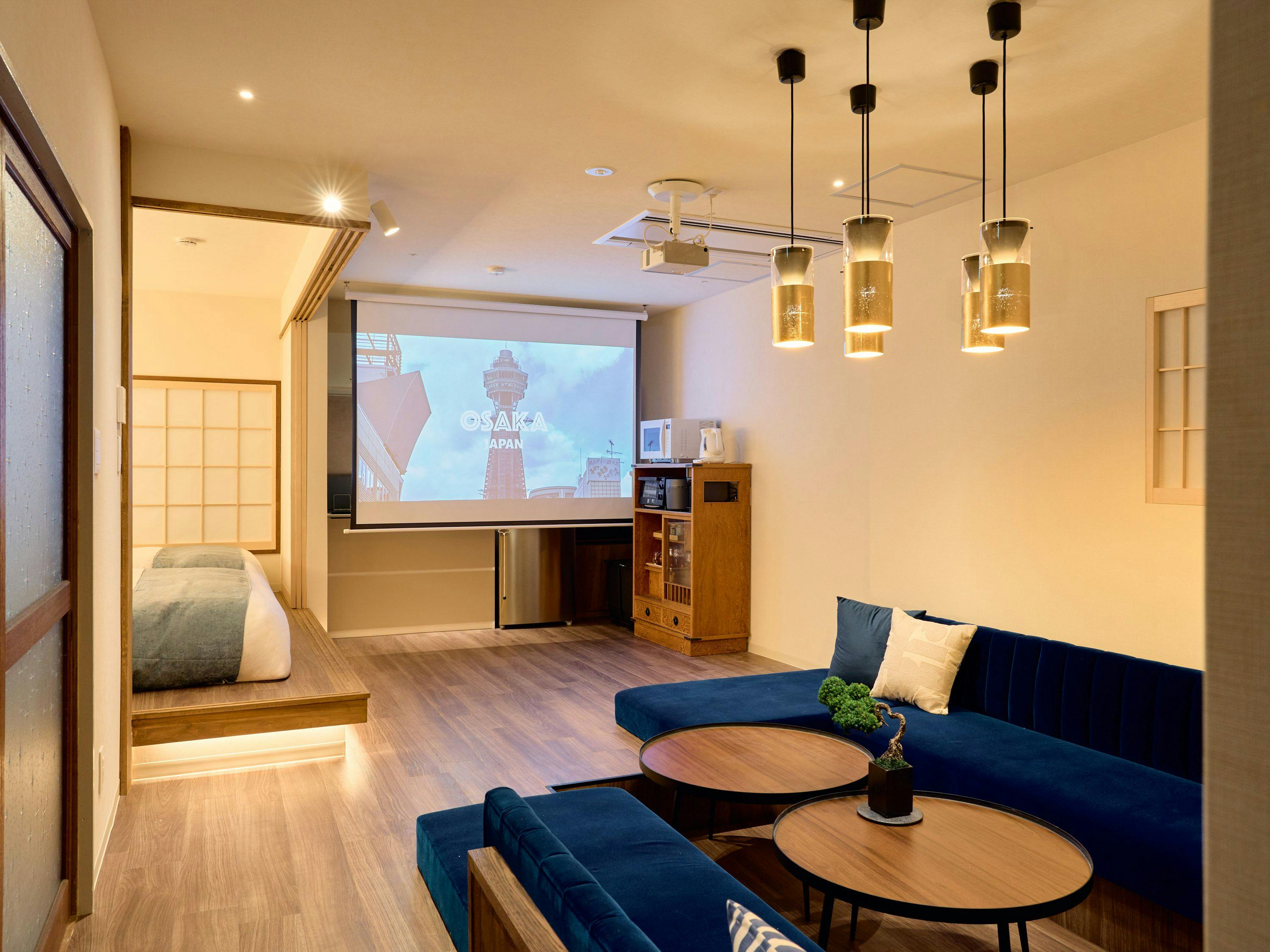 大阪・弁天町に佇む「今昔荘 大阪 弁天町 - 屋上庭園 -」は、1日1組限定・一棟貸切で楽しむ特別なヴィラ。最大の魅力は、開放的な屋上庭園。煌めく夜景や星空を眺めながら、プライベートなひとときをゆったりと過ごせます。 室内には、家族や友人と集える広々としたリビング、調理が楽しめるキッチン、長期滞在にも便利な洗濯機を完備。屋上と室内を行き来しながら、食事や団らんを心ゆくまで楽しめる“暮らすように泊まる”体験を、都会の真ん中でお届けします。