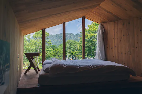 Earthboatはプライベート薪サウナ付きのトレーラーハウスです。ふかふかのベッドがあるホテルのような室内で過ごしながら、本格的アウトドアが楽しめる宿泊施設のため、キャンプ初心者の方も気軽にお楽しみいただけます。 戸隠山脈を眺望できる絶好のロケーションなので、朝焼け、夕焼け、時間によって移り変わる景色を、バーベキューやサウナの休憩時間、もちろんお部屋の大きな窓からも、是非お楽しみください。 戸隠神社に程近く、登山やスキー、スノーボードなどの恵まれた自然遊びが気軽にでき、スキー場が隣接しているのも魅力の一つです。