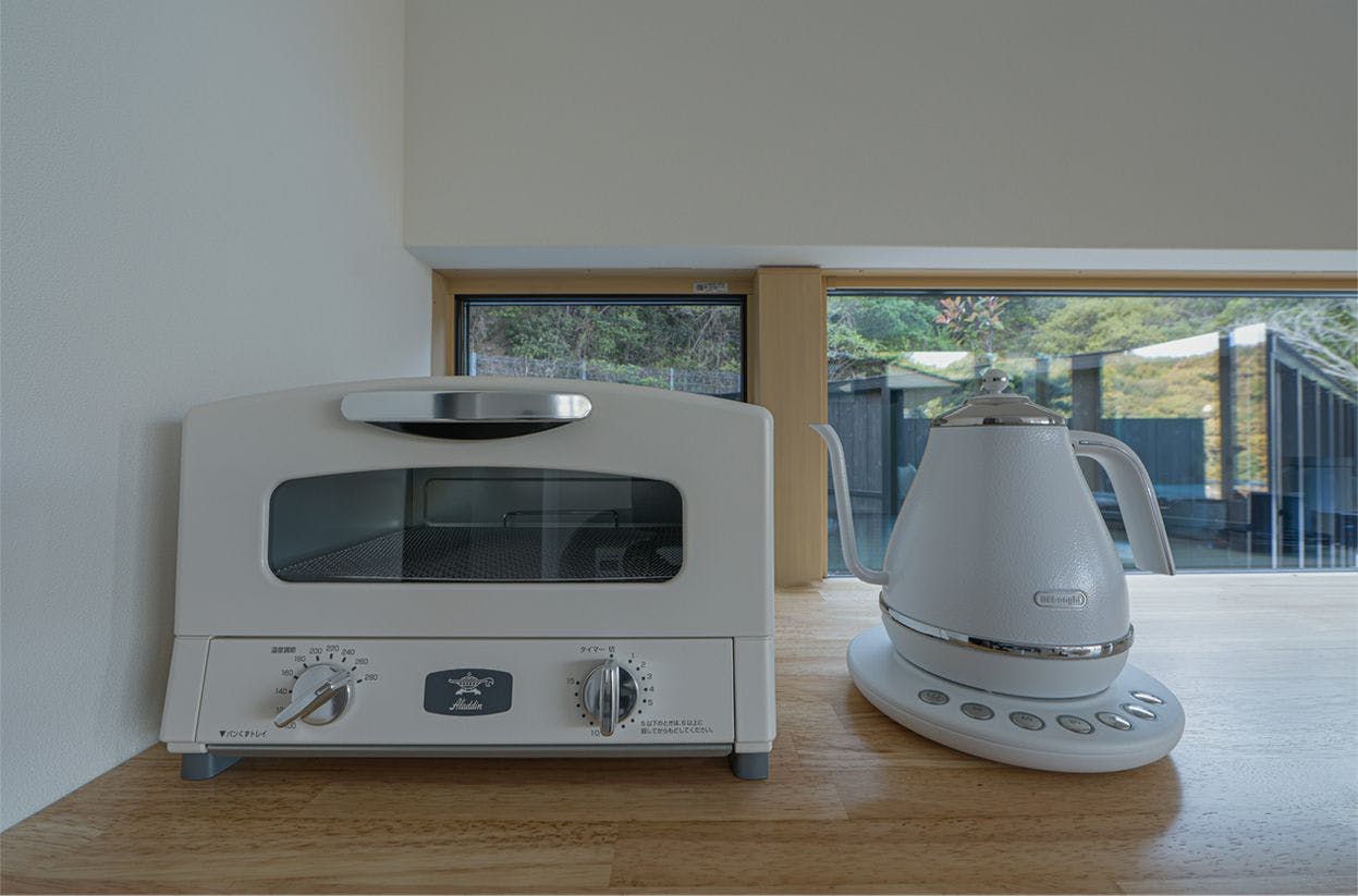 | 朝食 | 朝食として系列店『海辺のパン工房Hana』自家製のパン・シリアルをお部屋にご用意しております。 |