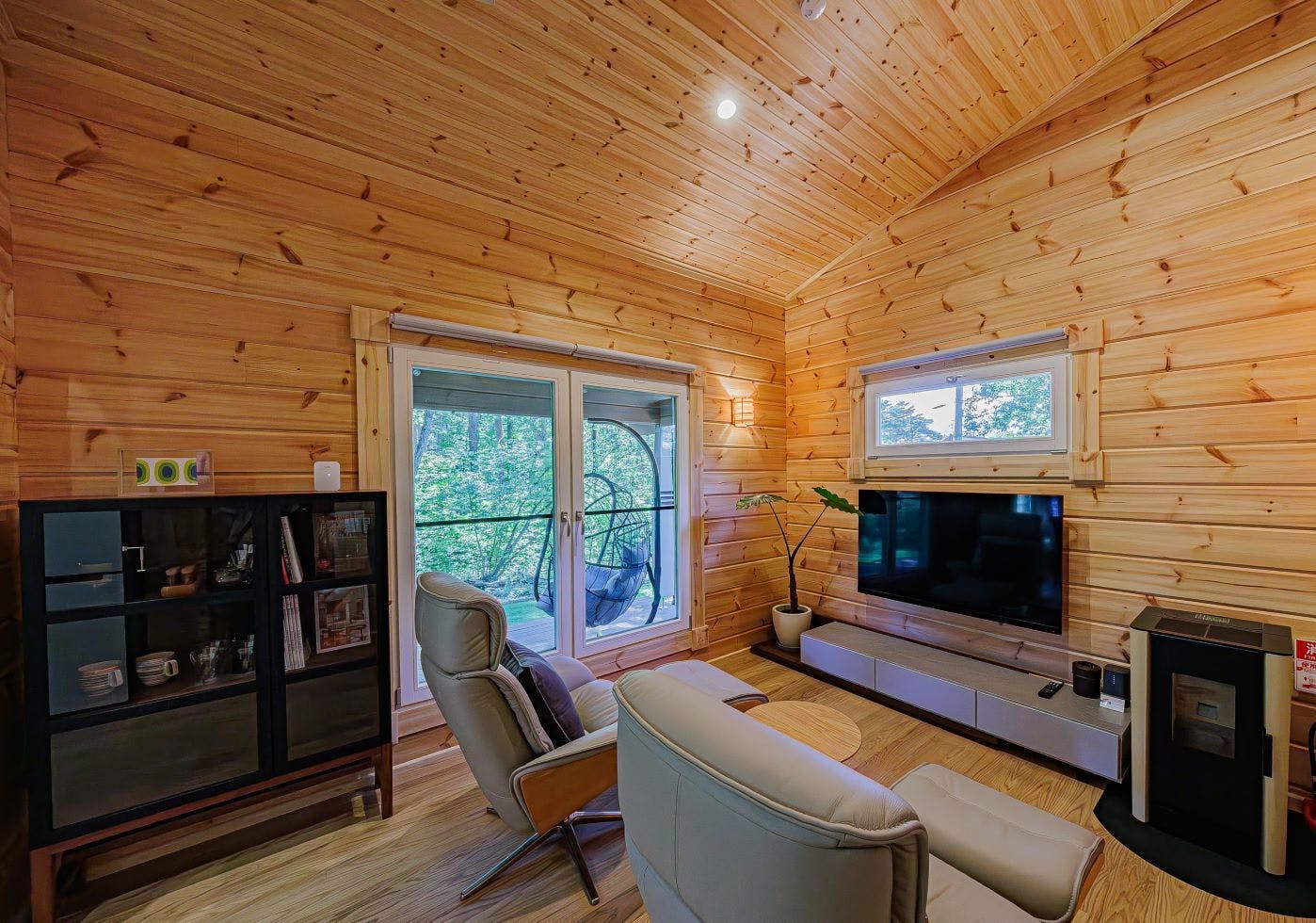2024年8月グランドオープン、北欧フィンランドの森で育ったパイン材を贅沢に使ったログハウスの一棟貸しコテージ。爽やかな風と木漏れ日、小鳥のさえずり、軽やかに走る小海線の音…豊かな自然を堪能しながら日々の疲れを癒し、大人な時間を愉しむのにピッタリな空間です。 開放感のある高い天井と明るい日が差し込む天窓、インテリアは北欧のものにこだわったナチュラルモダンな室内。どこにいても木の香りに包まれ心が落ち着きます。設備が充実したキッチンではお料理を楽しんでいただけます。四季折々の自然を眺めながら、デッキで出来立てのお料理やおいしいお酒はいかがでしょうか。お庭のガゼボではBBQもお楽しみいただけます。