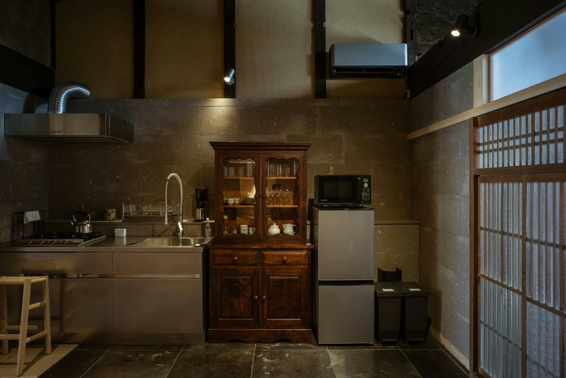 自然素材を空間に贅沢に使用した、平屋建一棟貸の古民家ホテル