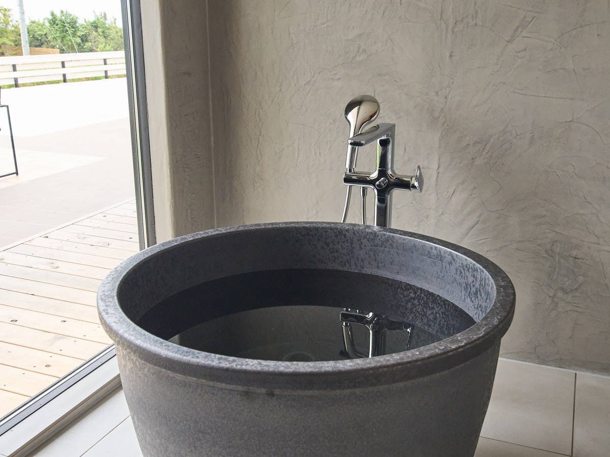 施設内のプライベートサウナではHARVINA製サウナストーブを使用し、本格的なセルフロウリュが楽しめます。室内にあるので、外気温に左右されることなく、お好みの温度でリラックスでき、心地よい蒸気に包まれた時間をお過ごしいただけます。サウナ内の水風呂は、肩まで浸かれる壺型のデザインで、サウナ後のクールダウンも贅沢に。ご滞在中は自由にお使いいただけます。