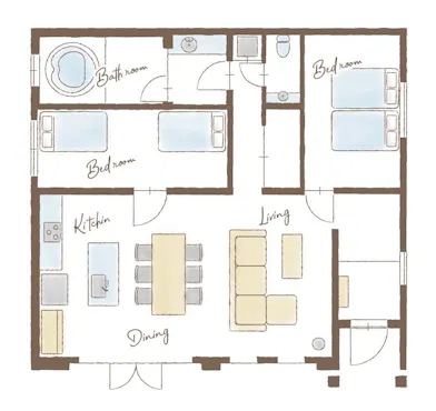以下のような設備や特徴があります。 一棟貸切・キッチンあり・連泊中清掃サービスあり・洗濯機あり・寝室複数・近隣スーパーあり・駐車場あり・食料品の持込可・ペット可