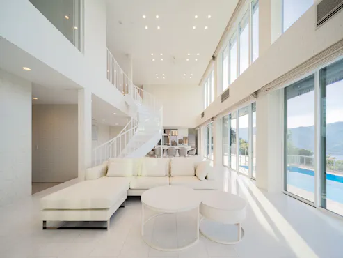 熱海市網代に位置するSUSリゾート 海を一望できる贅沢なロケーションと、白を基調とした洗練されたデザインが魅力です。 広々としたリビングスペースには吹き抜けの天井と優雅な曲線を描く螺旋階段が配置され、細部にまでこだわったインテリアが、上質なリゾートステイを演出します。 室内のお風呂は網代温泉の源泉、屋外には温水プライベートプールとジャグジーを完備し、海風を感じながらリラックスした贅沢な時間をお過ごしいただけます。 大きな窓からは、日々移り変わる青い海と四季折々の美しい自然が楽しめ、非日常を味わえる癒しの空間が広がります。 高級感あふれる客室には上質な寝具が揃えられ、快適で心地よい休息と共に贅沢なひとときをお届けします。 大切な人と共に五感を解き放つリゾート時間をお楽しみください。