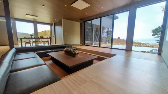 1500平米の広大な敷地を誇るプライベートヴィラで、贅沢体験をご提案いたします。 300平米を超える広さのドックラン、段々畑と海の絶景を一望できる高台からの眺め、寝室からは幻想的な竹藪のライトアップ。 1日1組限定の贅沢な空間で愛犬と一緒に特別な休日をお過ごしください。