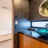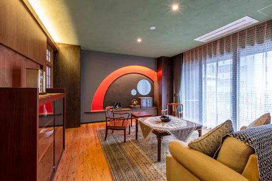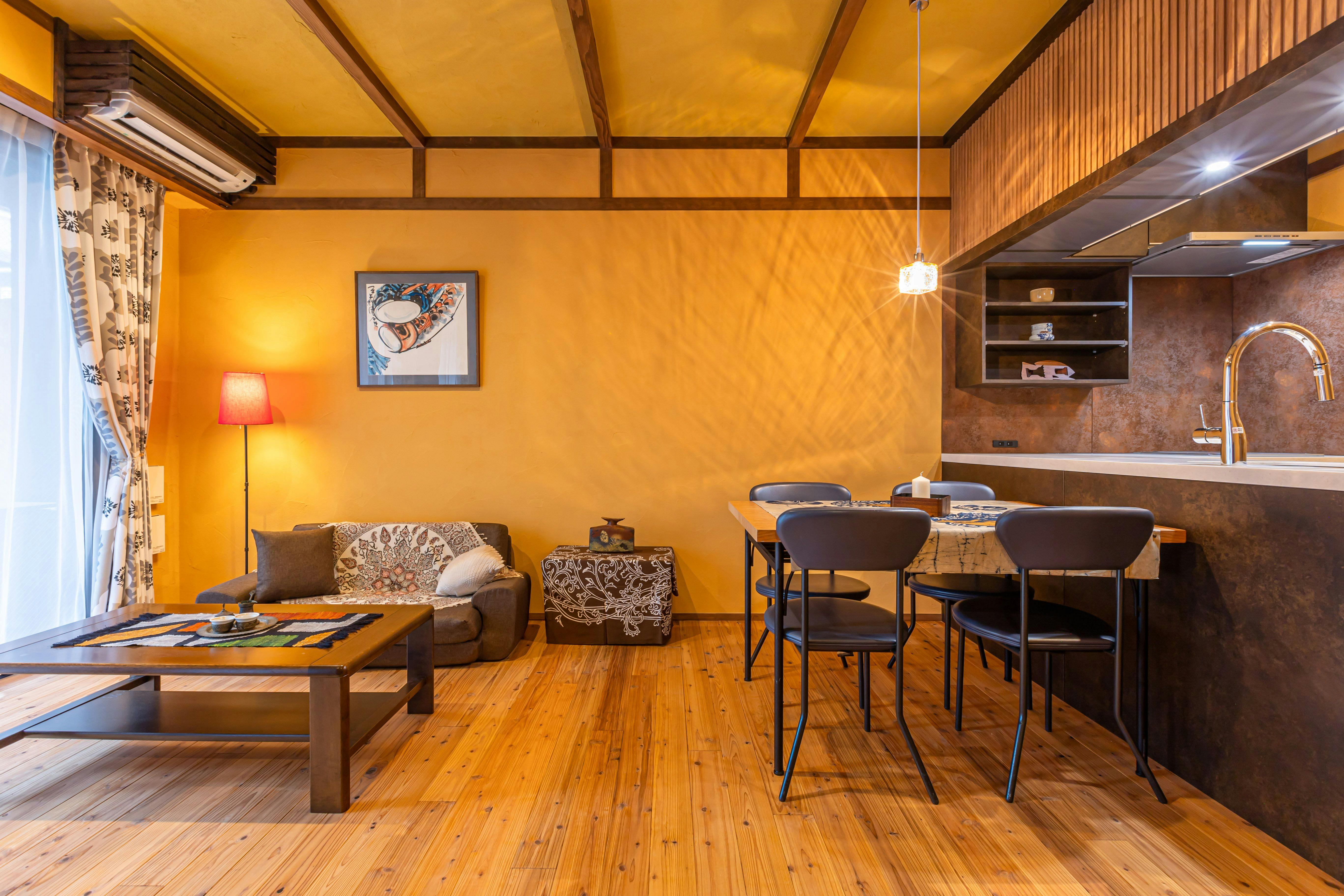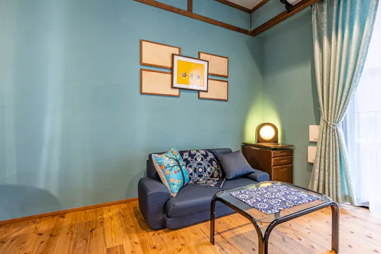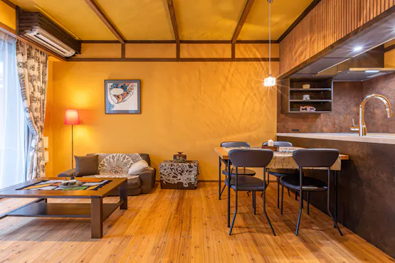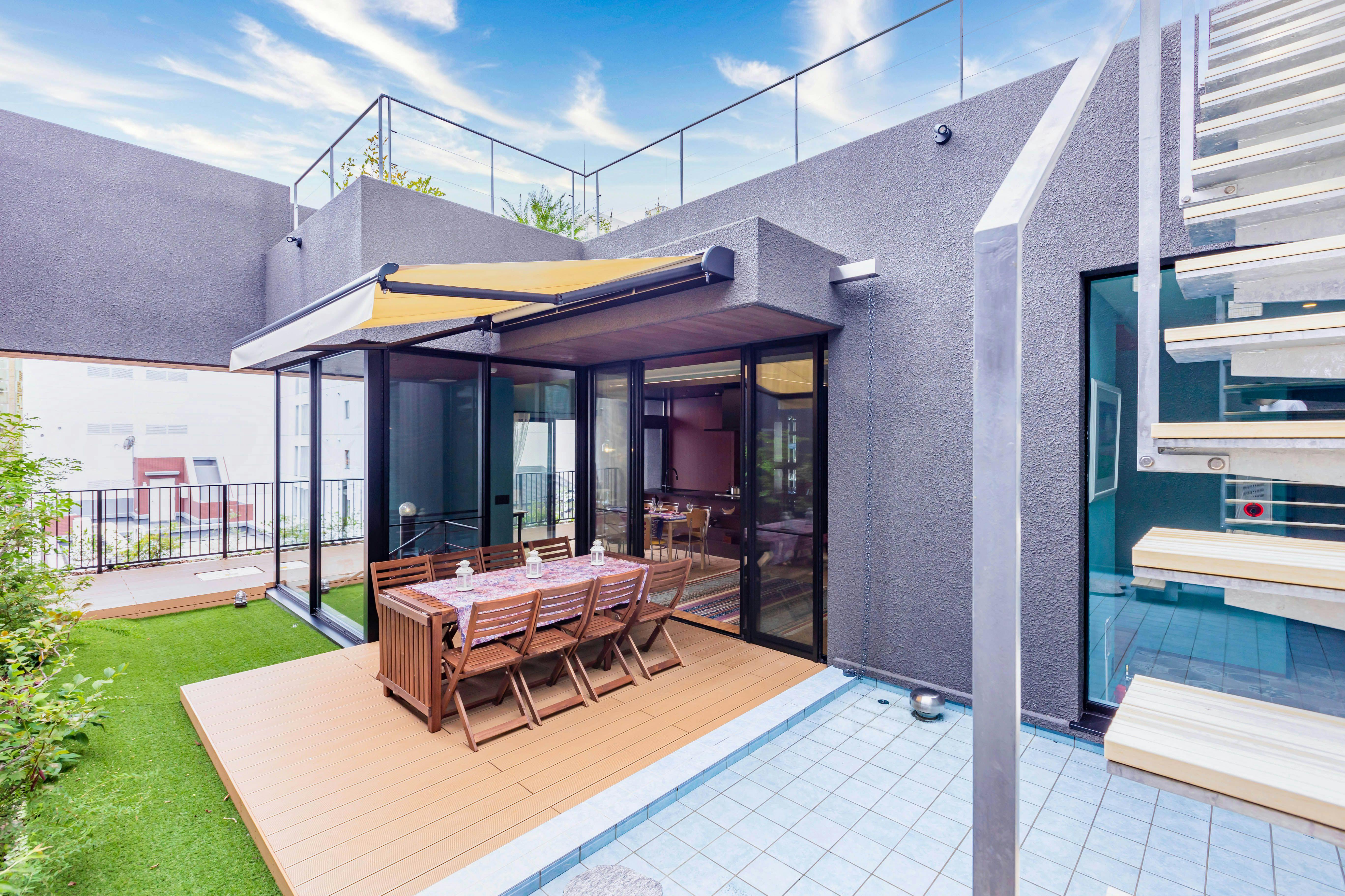 スミス オアシスは道頓堀・心斎橋にほど近い大阪中心地にありながら、緑と滝の流れる水辺に囲まれた、高級感あふれる唯一無二のゲストハウスです。 コンクリートジャングルと呼ばれる大都市に、ただ宿泊する器を作るだけでなく、やすらぎを感じられるオアシスを作りたいというオーナーの思いが詰まっています。和モダンの館内は、壁と天井は珪藻土、床と柱は無垢の木を使用し、自然素材にこだわっただけでなく、古今東西のアートも配置したアートギャラリーのような空間になっています。 各お部屋では落ち着いた雰囲気のリビングダイニングや植栽を配した広いバルコニーでゆったりとおくつろぎいただけます。本格的なキッチン、広いバスルーム、洗濯機も設置しておりますので「暮らすように滞在する」長期滞在の方にも最適です。特にペントハウスはメゾネットになっており、5階の屋上庭園では緑と滝を眺めながらイベントやお食事会にもご利用いただけます。ここが本当に大都会の真ん中にあるのかしらと思うくらい自然を感じ、都会の中のオアシスをお楽しみくださいませ。