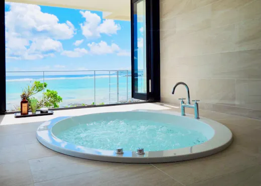美しいオーシャンフロントに佇む、奥武島プライベートヴィラへようこそ。 室内は洗練されたモダンインテリアで統一され、海風を感じながらテラスでのBBQもお楽しみいただけます。 フルキッチンや充実したアメニティ、タオルもご用意しており、快適な滞在をサポートします。 寝室は各フロアに1室ずつ配置され、プライバシーにも配慮。 お車で15分圏内には複数の有名ゴルフコースがあり、ゴルフ目的のご滞在にも最適です。 ジャグジーに身を沈めれば、目の前には宝石のように輝く珊瑚礁の海。 朝はやわらかな陽光と海のささやきに包まれ、夜は満天の星と波音が心を癒します。 心を解き放つ、極上の非日常を体感してください。