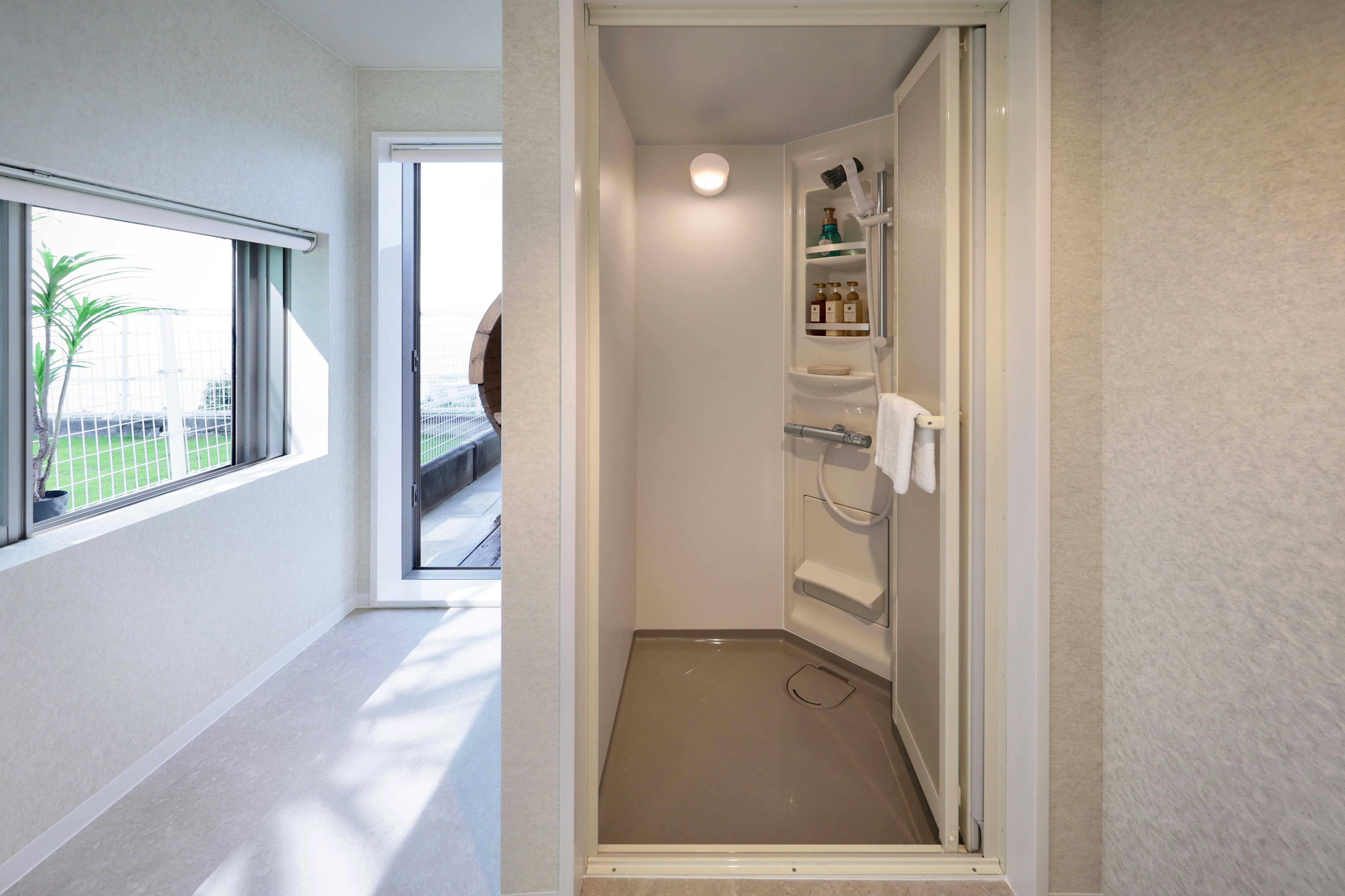 当ヴィラでは、木の温もりあふれる「バレルサウナ」をご用意しております。 樽型の構造により熱が室内全体に心地よく巡り、リラックス効果を高めます。 ご宿泊棟ごとにプライベート利用が可能で、外の景色を楽しみながら“ととのう”ひとときをお過ごしいただけます。