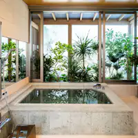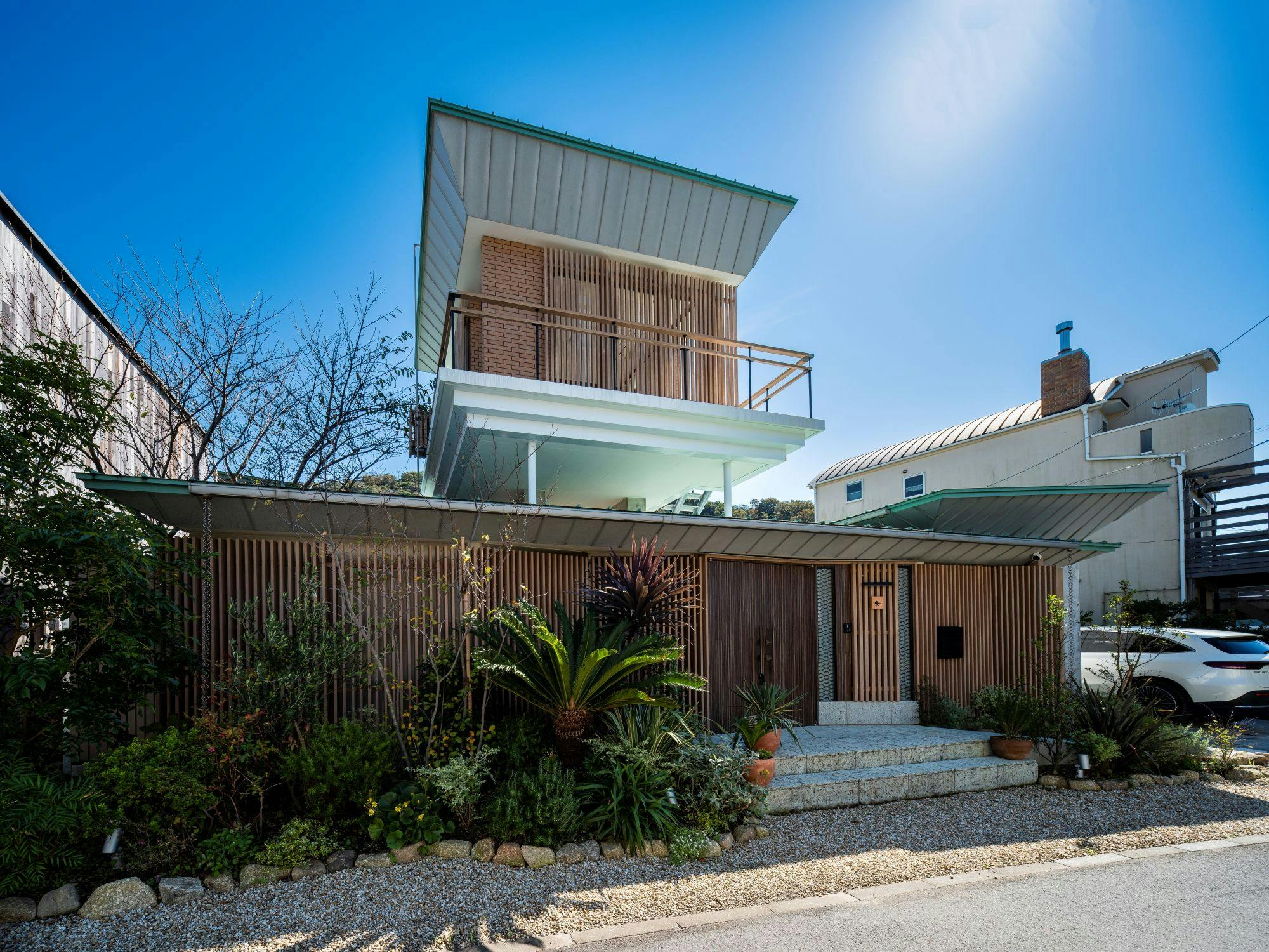 葉山の海辺に佇む「Yashiro」は、伝統建築と自然が調和する特別な宿です。「外で暮らす家」をコンセプトに、室内と屋外の境界をあいまいにし、四季や自然と一体になれる設計が魅力。緑青色の屋根が印象的な外観は、神社のような静けさを感じさせます。真のバリアフリー対応で、車椅子の方も安心。愛犬との滞在も可能で、家族全員が心地よく過ごせる空間です。 さらに海まで徒歩1分という抜群のロケーション。朝の散歩や愛犬とのひとときに最適です。徒歩5分の距離には皇室の御用邸があり、歴史ある葉山の趣を感じられます。夕日が美しい葉山公園へも徒歩1分で、長者ヶ崎や江ノ島を望む絶景も楽しめます。自然と歴史に囲まれた特別な時間をお過ごしいただけます。