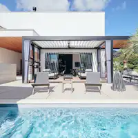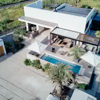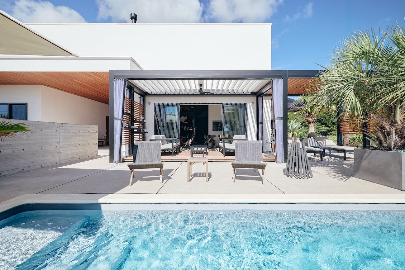 以下のような設備や特徴があります。 一棟貸切・キッチンあり・連泊中清掃サービスあり・洗濯機あり・寝室複数・駐車場あり・食料品の持込可・プールあり・ペット可