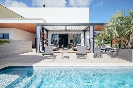 温暖な南房総の雄大な自然に囲まれた高台 吹き抜ける海風と爽やかな木々の香りにつつまれ 夜には満天の星空と静寂が心を満たす 独立して建つ母屋と離れ、バスルーム棟に本格薪サウナや露天風呂エリア 大型屋外プールに遊び心溢れるトレーラーハウスなど充実した設備を有する 「PREMIUM Funny house」 まるで異国にいるようなプライベートレジデンスで プレミアムなお時間を心ゆくまでご堪能ください