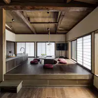 飛騨高山の歴史を感じさせる「高山陣屋」「古い町並み」のすぐそばに佇む、一日一組限定の一棟貸し宿泊施設「名田町 ななの陽 – ななのひ」。岐阜県の伝統工芸として有名な飛騨春慶塗から着想を得た設えを、町家の随所に取り入れた完全プライベートな町家(町屋)宿。 最大9名様まで宿泊可能な町家には、掘りごたつ風の囲炉裏テーブルやソファで寛げるリビングダイニング、会話を楽しみながら料理ができるオープンキッチンを完備。洋寝室3室と和寝室のほか、円窓から前庭を望む浴室やシャワーブースも備え、大人数でもゆったりと快適にお過ごしいただけます。 飛騨高山で受け継がれてきた伝統と自然美が静かに溶け込む町家宿「名田町 ななの陽」で、ワンランク上のご滞在を。