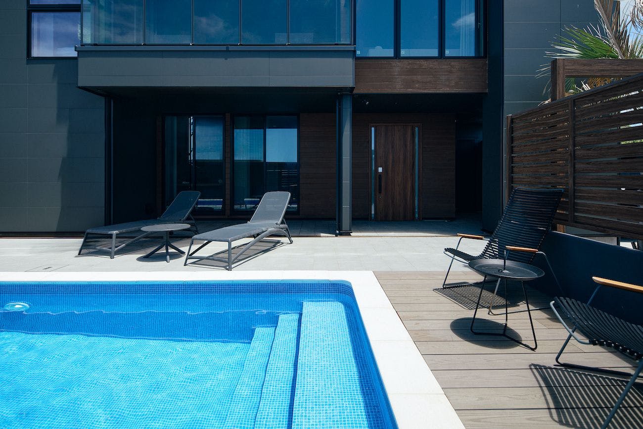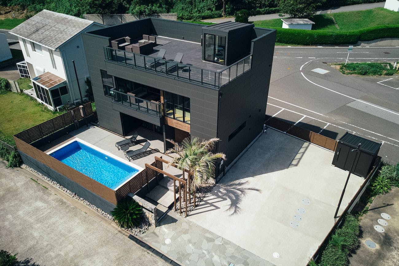 以下のような設備や特徴があります。 一棟貸切・キッチンあり・連泊中清掃サービスあり・洗濯機あり・寝室複数・近隣スーパーあり・駐車場あり・食料品の持込可・プールあり・ペット可