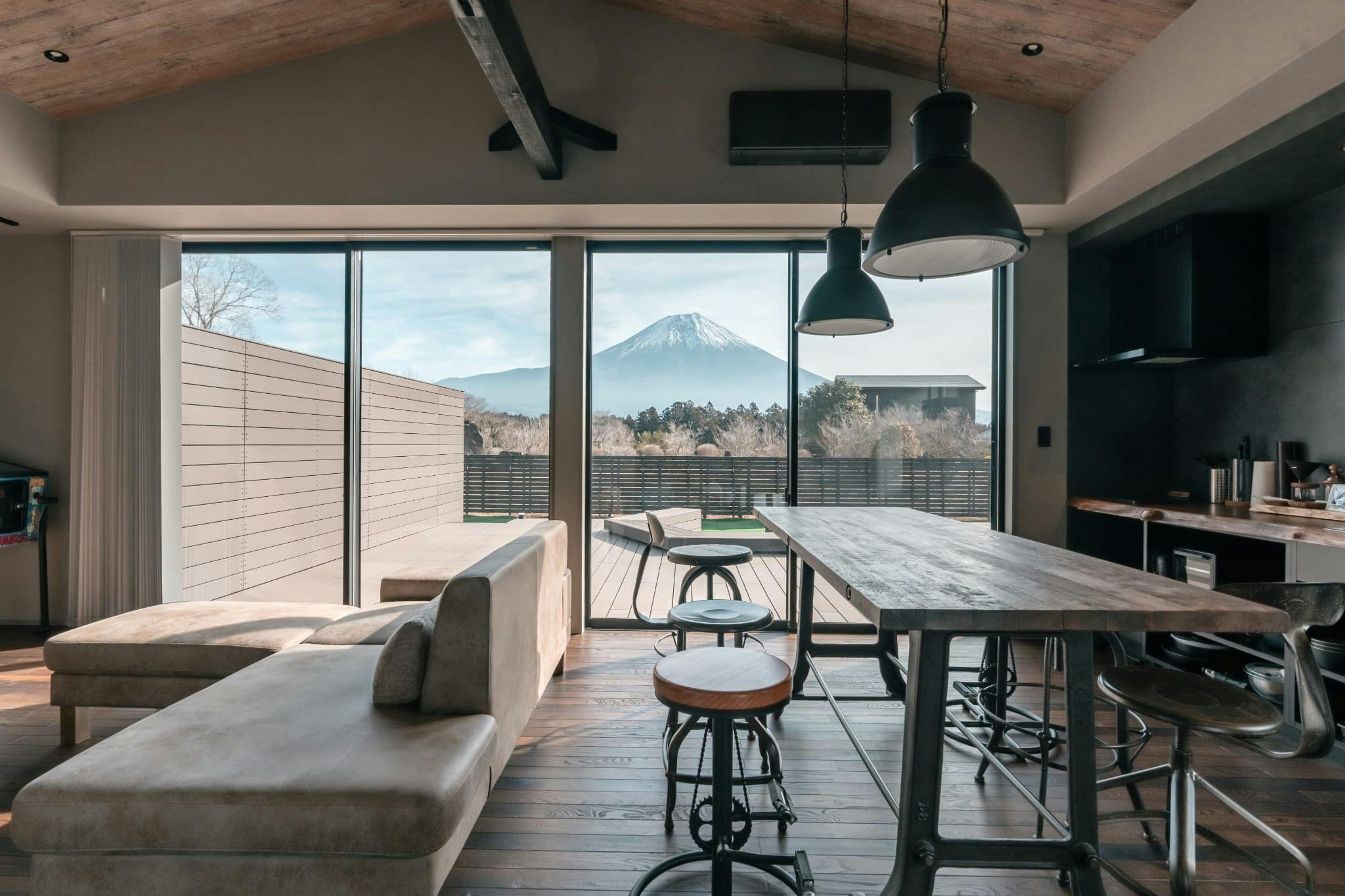 2025年9月にオープンした「なか富士」は、雄大な富士山を一望できる贅沢な一棟貸しの宿です。3棟すべての客室から富士山を望むことができ、趣の異なるインテリアで特別な時間をお過ごしいただけます。 朝霧高原にほど近い自然豊かな立地は、四季折々の景観はもちろん、渓流や満天の星空も楽しめる癒しの空間。大人数での滞在に最適で、4名~8名のグループ旅行にもおすすめです。 各棟には囲炉裏テーブルやBBQ設備を備え、自由なお食事スタイルが可能。大きなプライベートバスルームでは、日常を忘れる至福のひとときをお過ごしください。