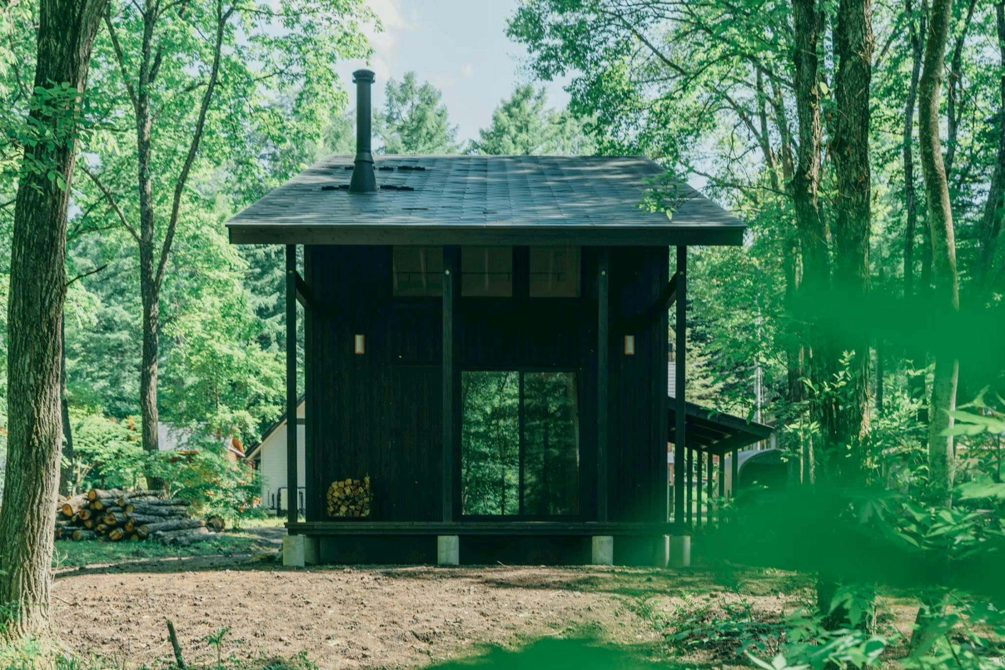 北軽井沢の森の中の陶芸工房に併設された、 1室だけの新築のロッジ