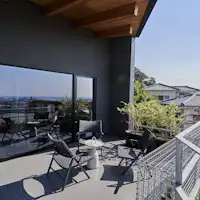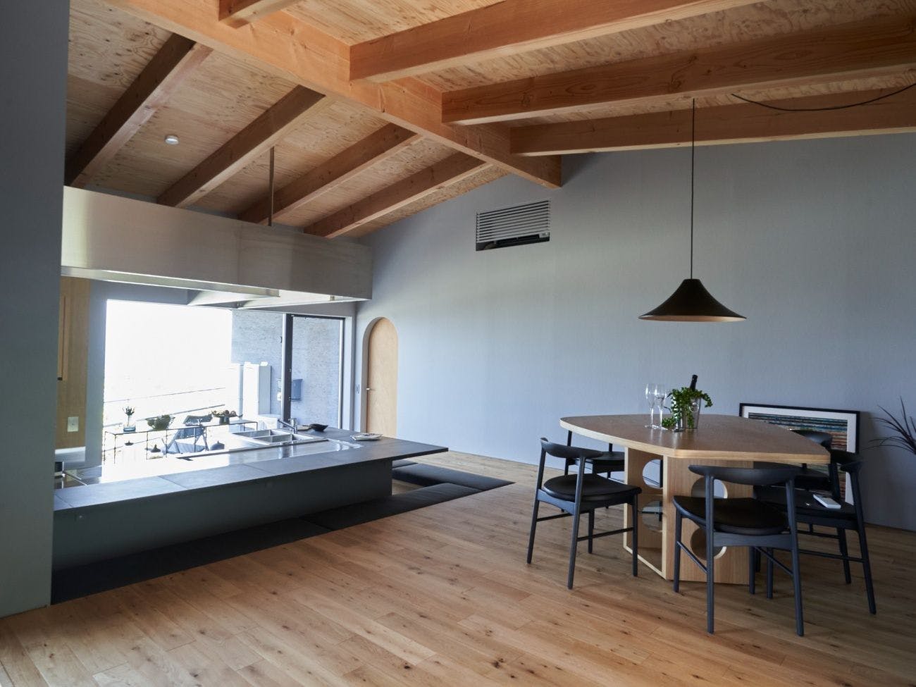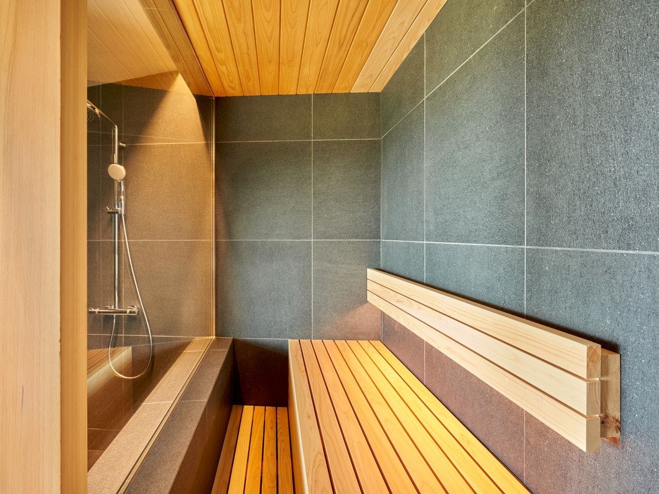 薪ストーブが灯る寛ぎのリビング、ハルビア製の高温サウナ、チラー完備の水風呂、インフィニティ仕様の露天風呂が五感をやさしく整えます。 関西国際空港方面の海と街並みを見渡せるテラスでは、風を感じながらの外気浴も。 ご希望に応じて、出張シェフによる本格鉄板焼きディナーもご用意致します。 日常を離れ、静けさと贅沢が満ちる時間をお楽しみください。