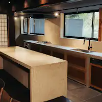 以下のような設備や特徴があります。 一棟貸切・キッチンあり・連泊中清掃サービスあり・洗濯機あり・寝室複数・駐車場あり・ケータリング・食料品の持込可