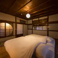 かつて、醤油づくりで栄えた名家の邸宅。 約3,000平米の敷地を、 1日1組だけでお使いいただけます。 三世帯で訪れても、 それぞれが思い思いに過ごせる広さがあり、 同時に、誰にも気を遣わずに一緒の時間を楽しめます。 そしてお二人だけで滞在される場合には、 この空間すべてを静かに独占することができます。 朝は庭を眺めながらゆっくりと過ごし、 夜は誰にも邪魔されずに語らう時間。 利用人数や過ごし方によって、 まったく異なる滞在体験が生まれることも、 この邸宅の魅力の一つです。 観光の拠点ではなく、 ここで過ごす時間そのものを目的に。 それぞれの形に寄り添う滞在をお楽しみください。
